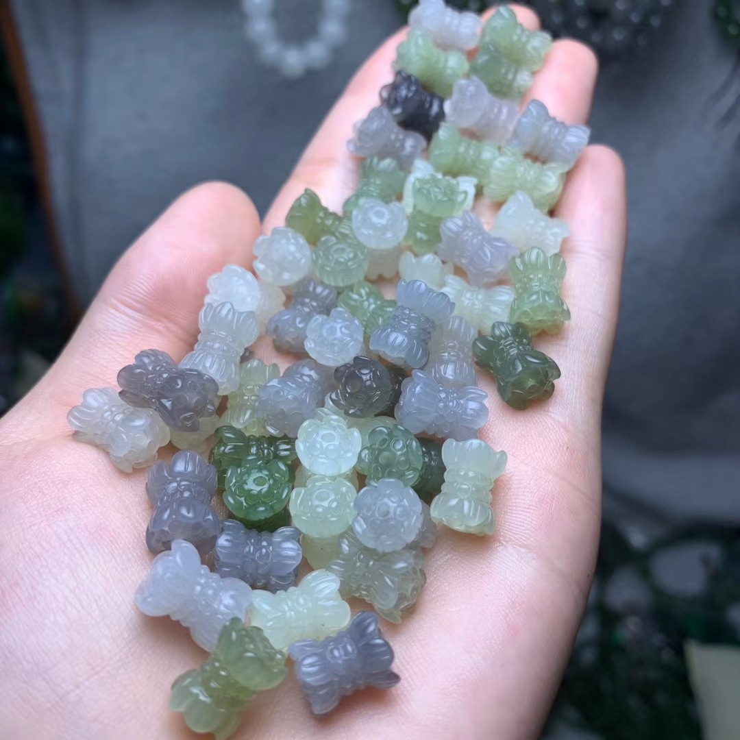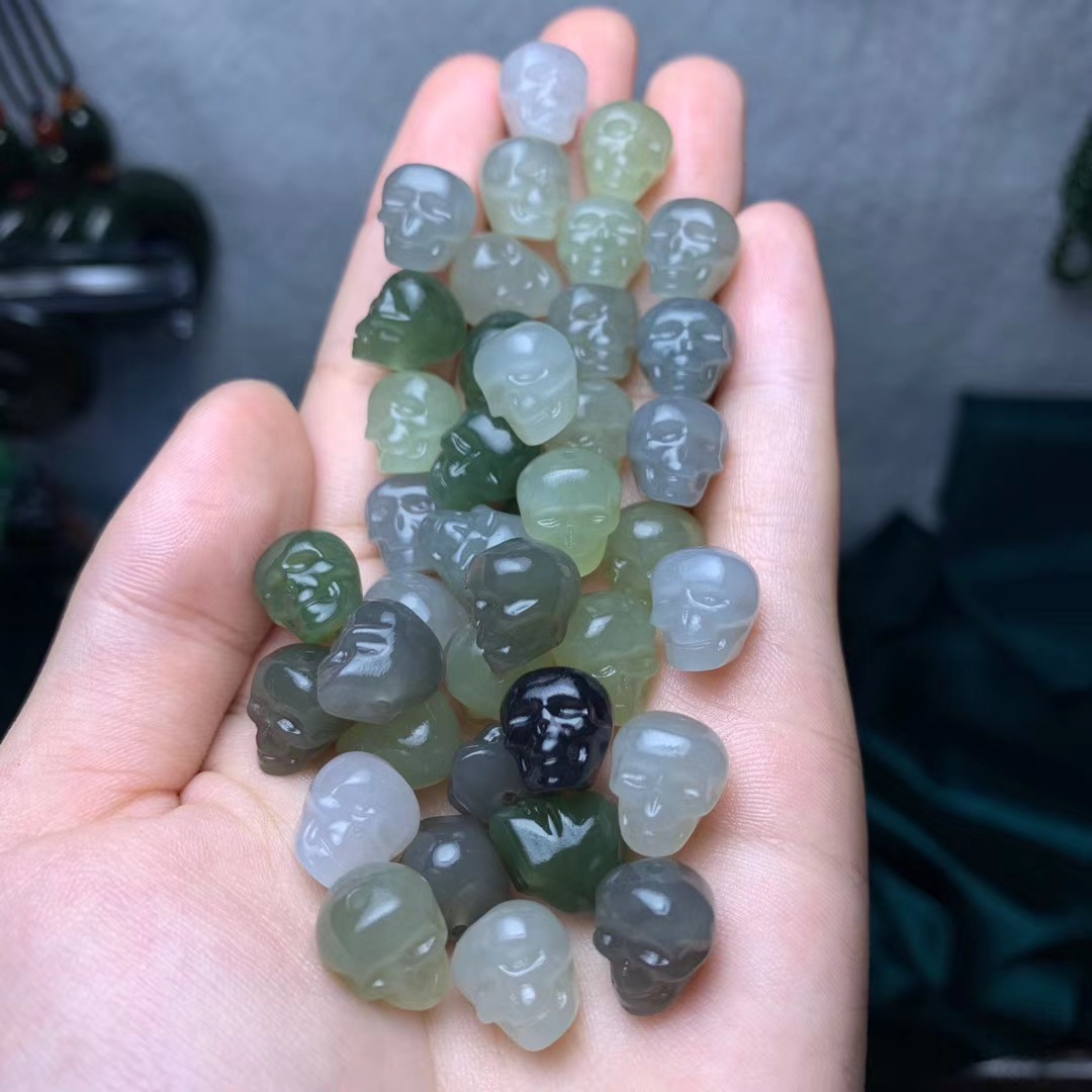 和田玉青海のスカルの小さい部品の材料は潤いがあってきめ細かくて清潔で雑多なdiyのアクセサリの部品がありません。