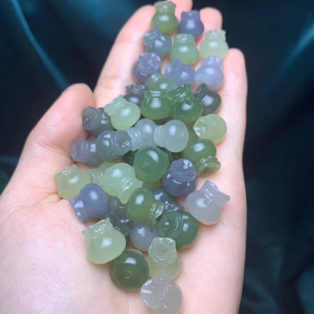 和田玉青海省のお金袋の背雲の部品は穴の材料の細い温かみと潤いの肉質の繊細なdiyの掛け物をまっすぐに通します。