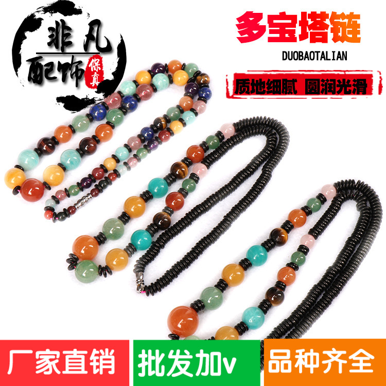 水晶多宝串塔チェーンネックレス瑪瑙多宝南紅青金イチゴ結晶瑪瑙黄虎眼塔チェーン