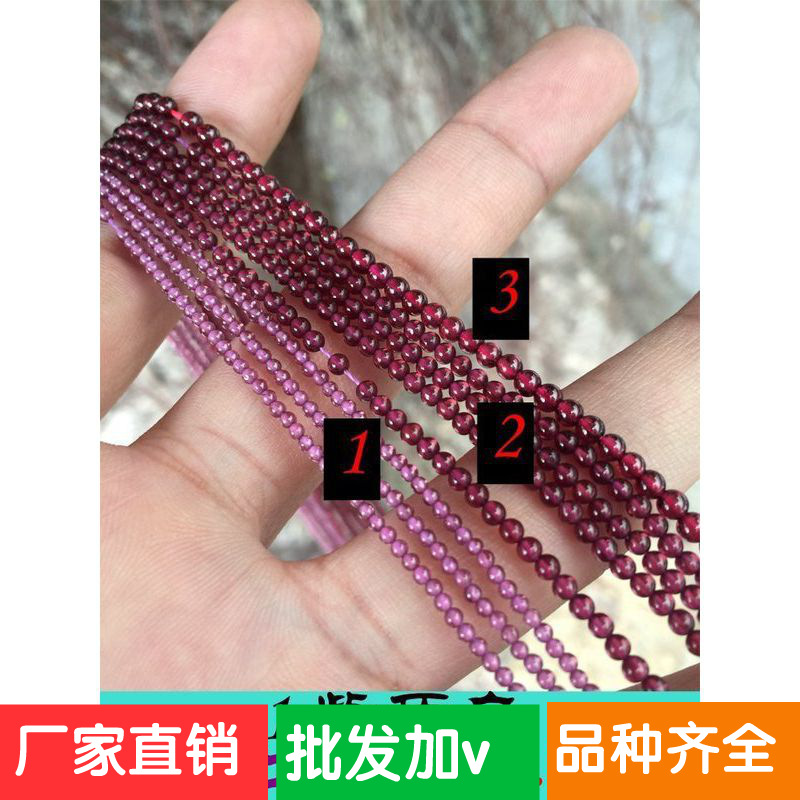 原鉱ガーネットのブレスレットの極細2mmの手串紫歯烏玫紅酒紅ガーネットの小さいサイズの数の米の玉