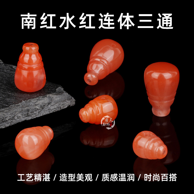 天然南紅水紅瑪瑙の連体三通の仏陀の頭の文は手の串を遊んで単珠の3頭の通の小さい部品の部品を飾ります。