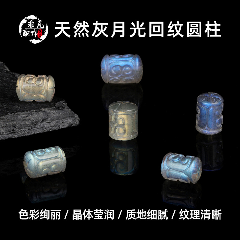 天然水晶灰月光彫刻回紋円柱閃光石散珠拉長石DIY手串アクセサリー部品
