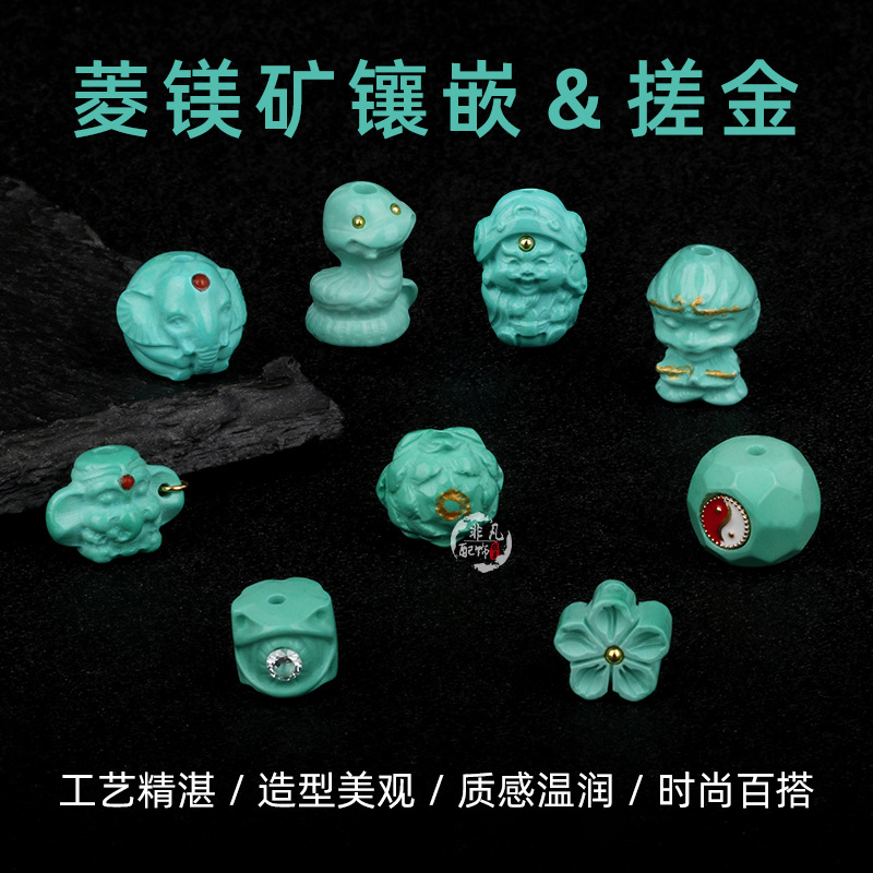 マグネサイト緑松石の新型モザイク金背雲象蛇宝梅蓮太極悟空DIYアクセサリー