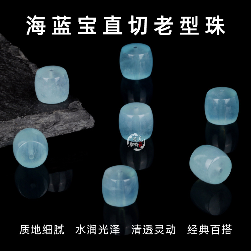 天然海藍宝直切老型珠散珠隔珠手作りdiy水晶ブレスレットネックレス多宝手串部品