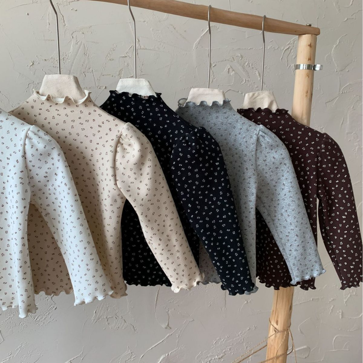 子供の底のシャツ2025春の新型韓国の長袖の底のシャツの子供の柔らかいモチとした百合の刺繍の底のシャツの上着