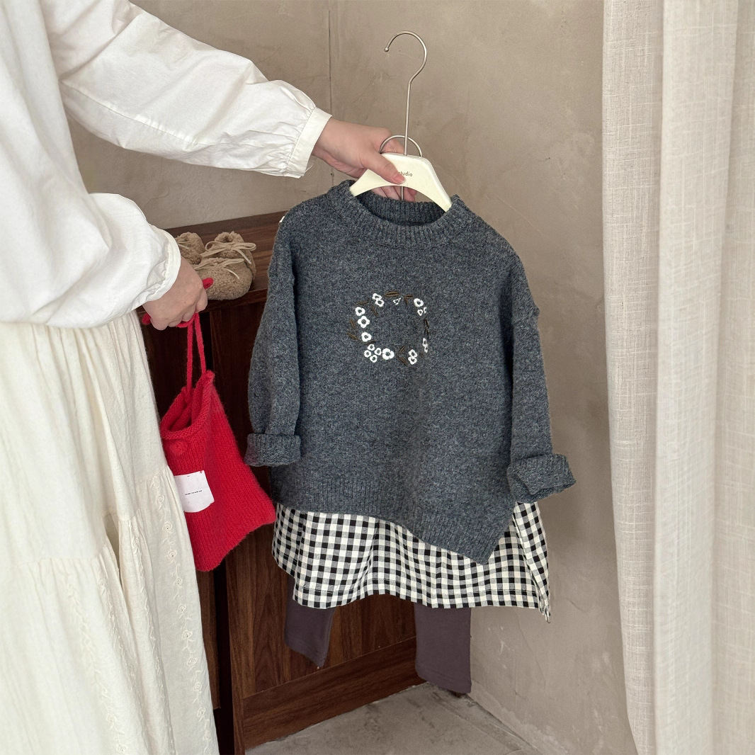 Laihao 2025 秋韓国版新作手刺繍プルオーバーセーター万能トップス