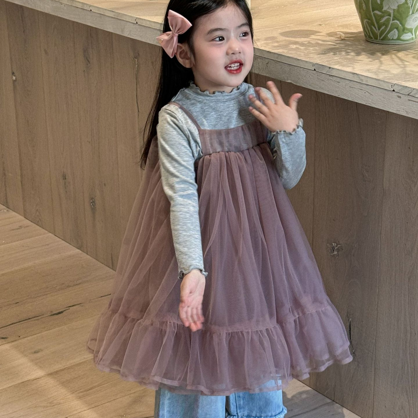 子供用スカート2025春の新型韓国の女の子のストラップのワンピースの子供の洋風の流行の蓬蓬のスカートはお姫様のスカートを重ねて着ます。