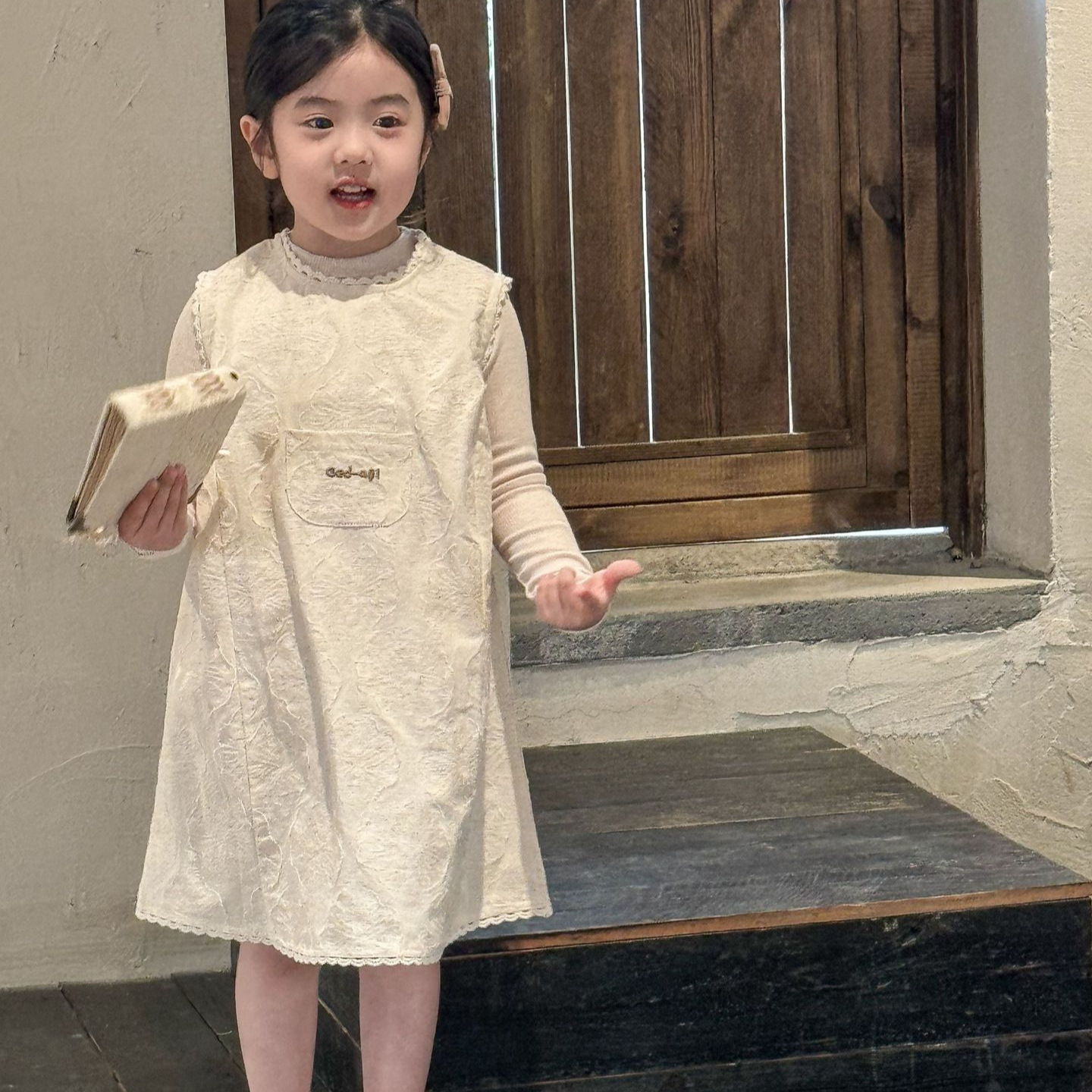 子供のスカート2025春の新型韓国版の女の子の洋風のベストスカートの子供の高級感の刺繍のノースリーブのワンピース