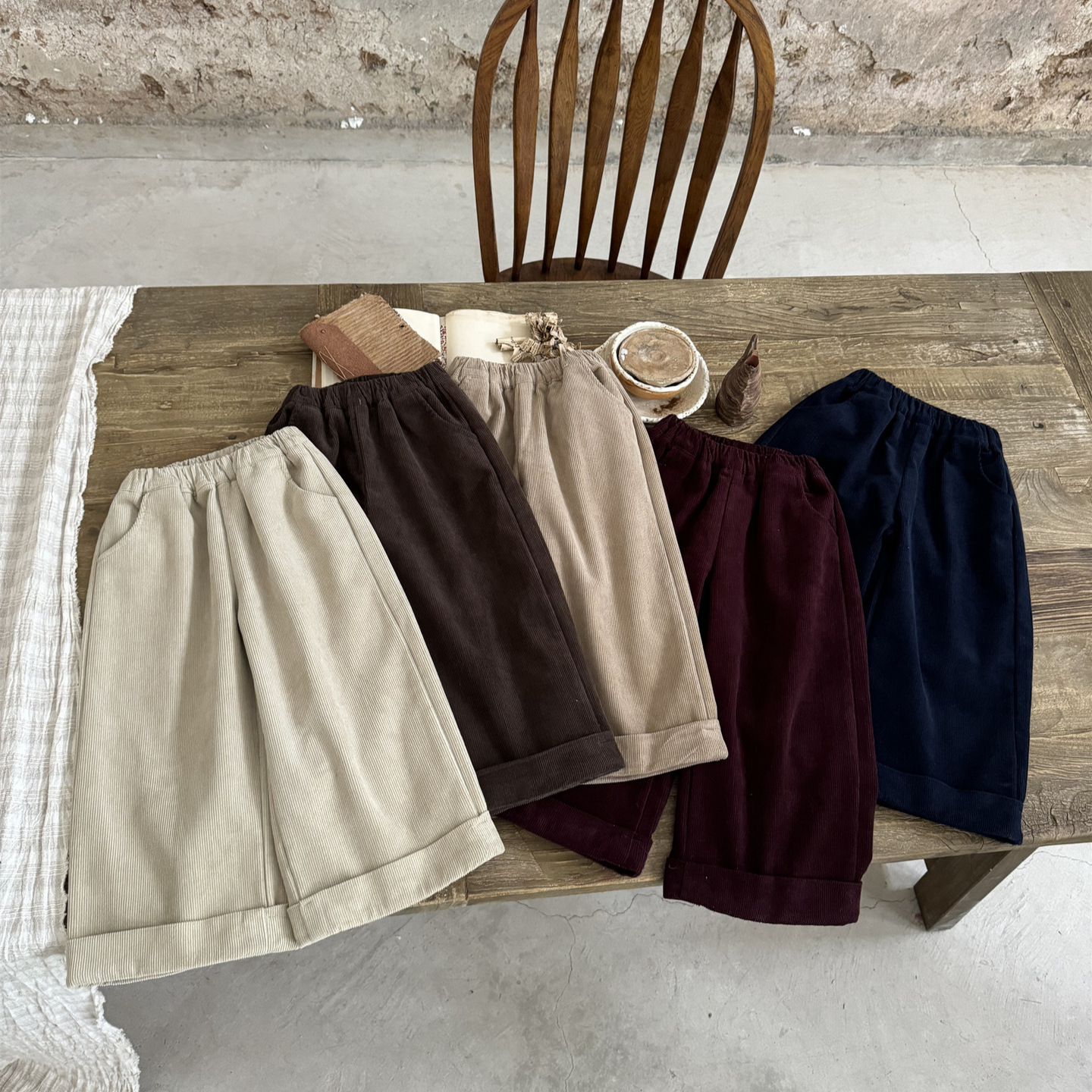 子供用ズボン2024冬の新型韓国版純色レトロなコーデュロイのズボン
