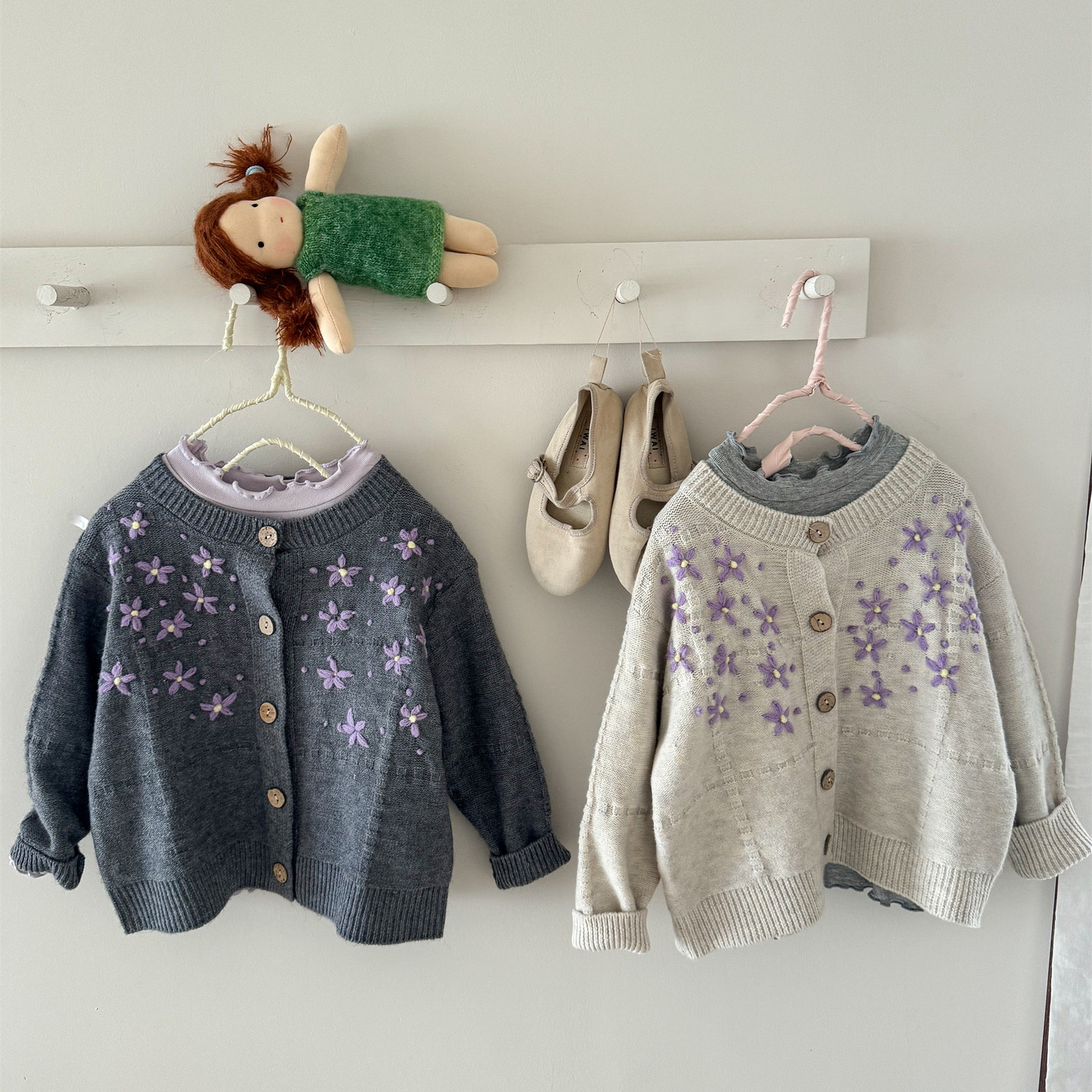 子供用ニットウェア2025春新作韓国風デザイン感立体刺繍カーディガン