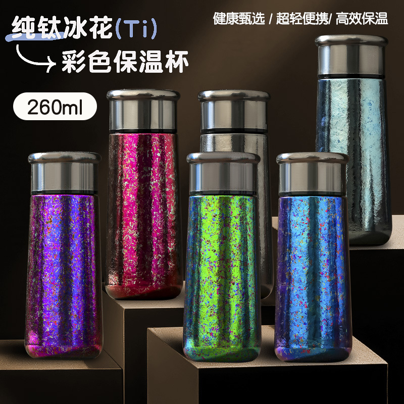 新しいミニ純チタン魔法瓶カップ、高価値二層チタンカップ、ポータブルポケットカップ、ウォーターカップ、男性と女性のためのギフトカップ
