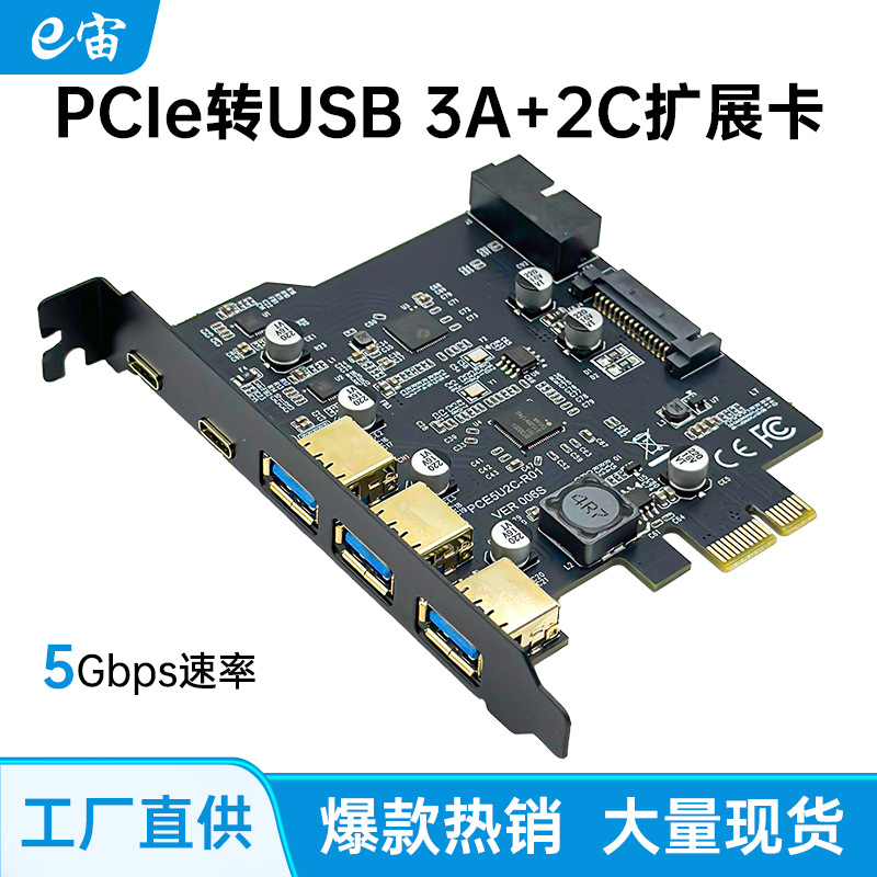 PCIe to USB3.2+Type-C アダプタカード 5Gbps デスクトップ拡張カード 19PIN+SATA 電源 3A2C