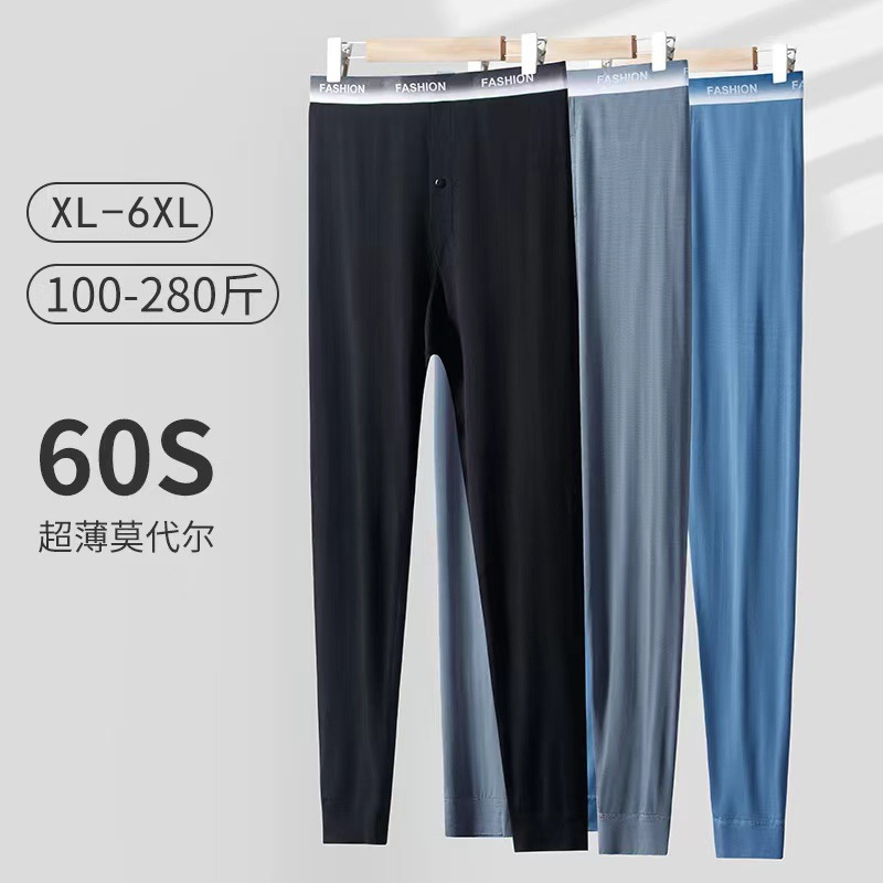 50番手モーダル秋パンツメンズ薄手ハイウエストタイトインナーウェアボトムスメンズパンツ春秋メンズラインパンツ