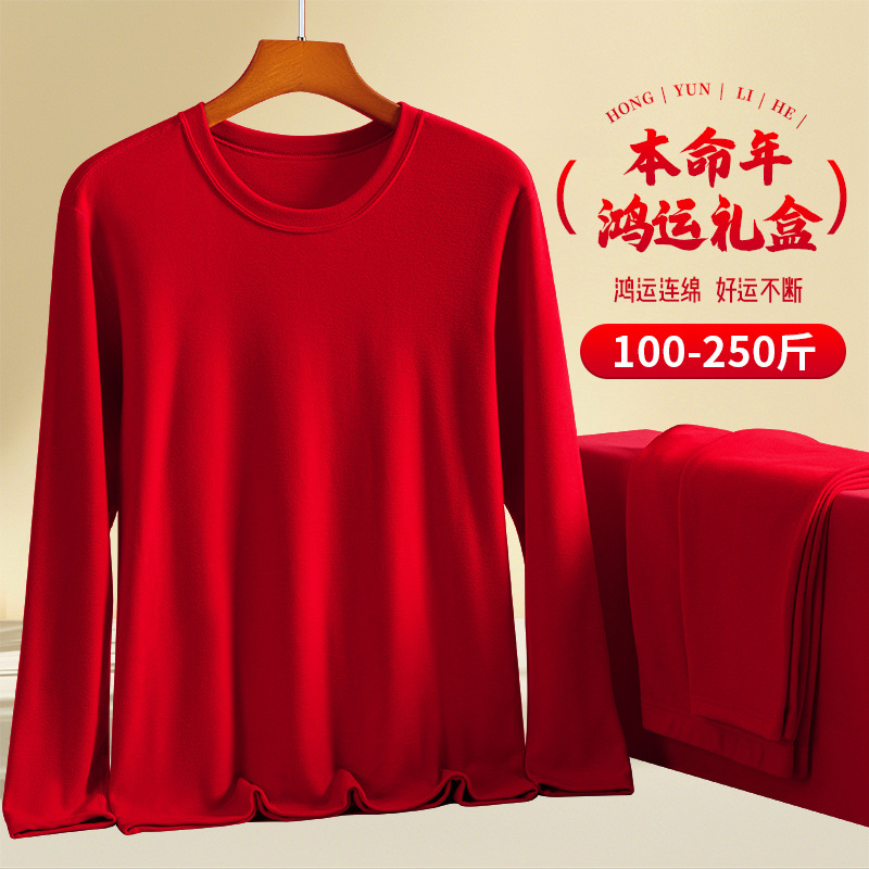 本命年秋服秋裤メンズセット レッドライカコットン 大きいサイズ 特大 馬年 レディース保温下着 ギフトボックス入り