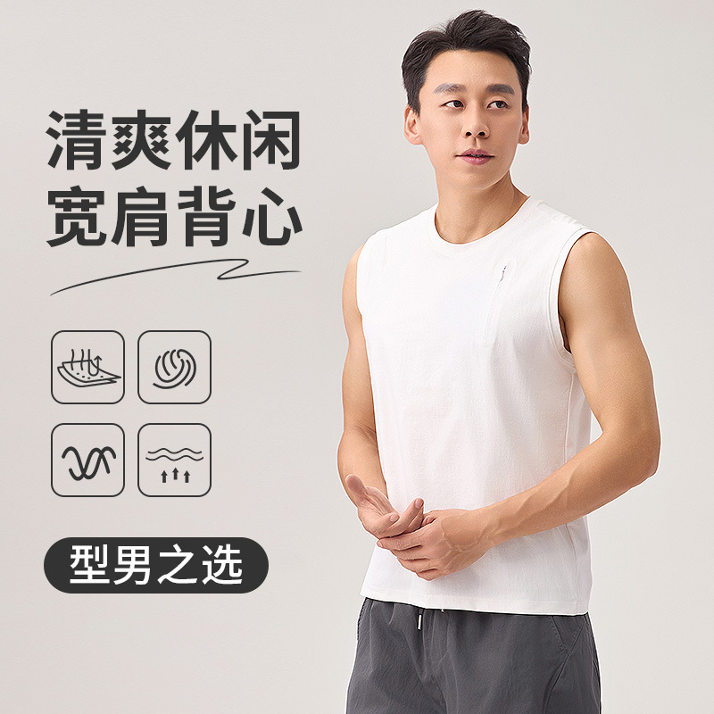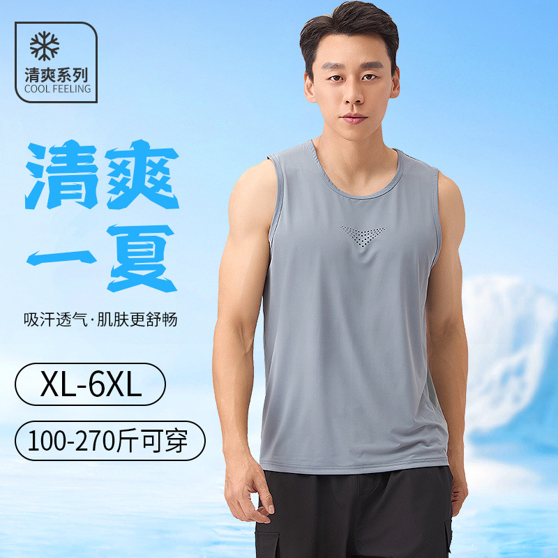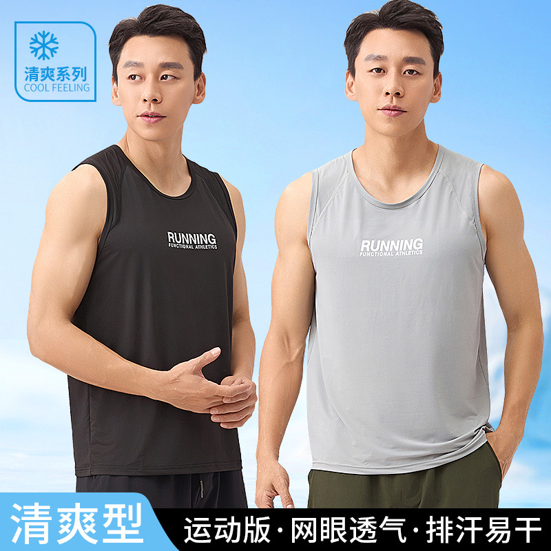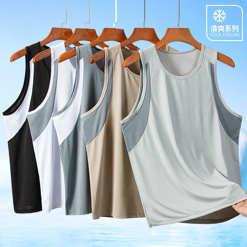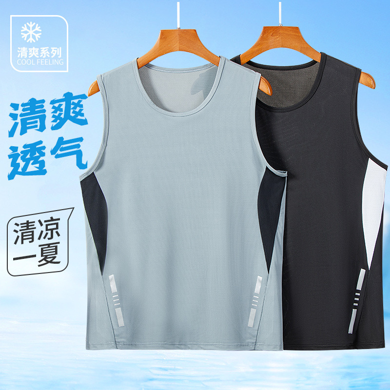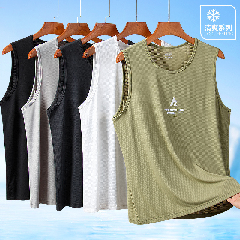 スポーツベストメンズ夏薄いアイスシルクエアメッシュ通気性速乾性ランニングワイドショルダーメンズトップボトリングシャツ