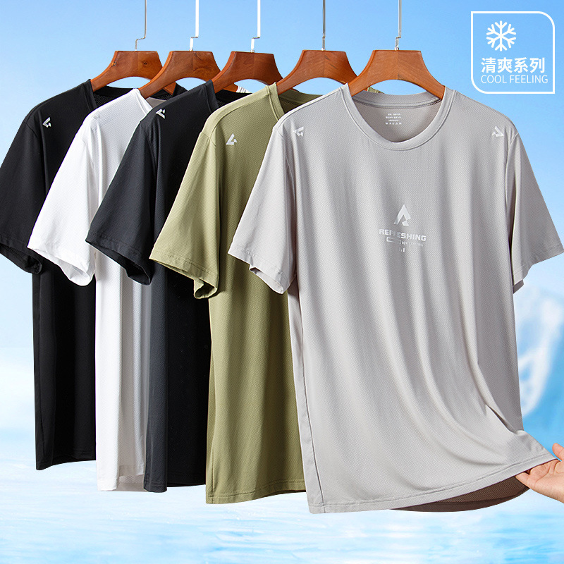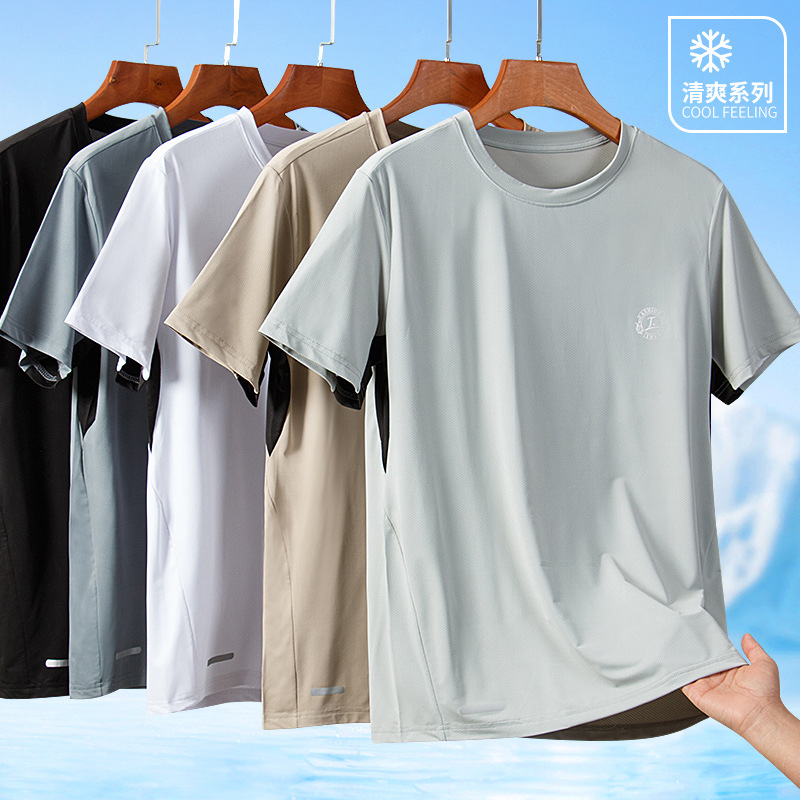 大きいサイズの半袖のtシャツの男性の薄いタイプの夏の運動のレジャーの氷の糸の白い底のシャツは太って男性の体のシャツを強めます。