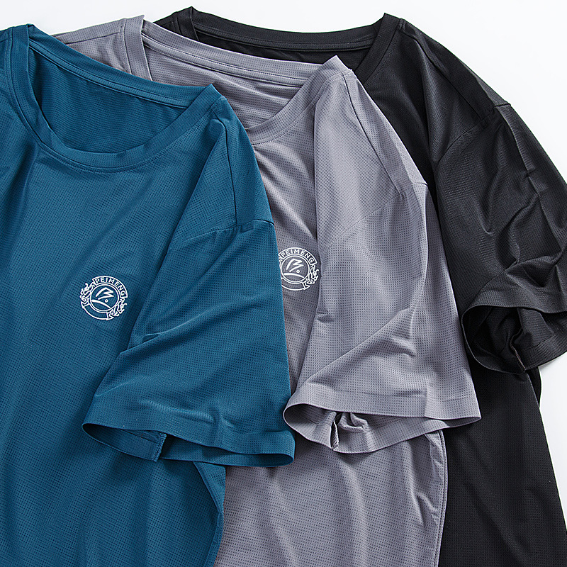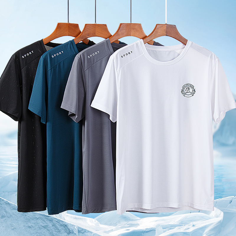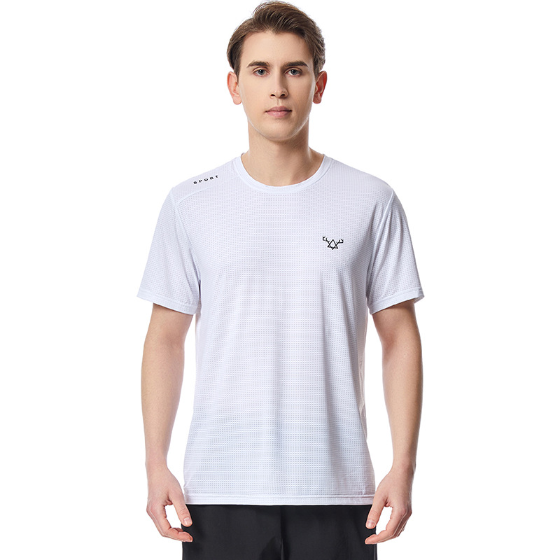 ホワイトスポーツTシャツメンズラウンドネックナイロンクール中空メッシュ通気性夏カジュアルメンズ半袖トップ