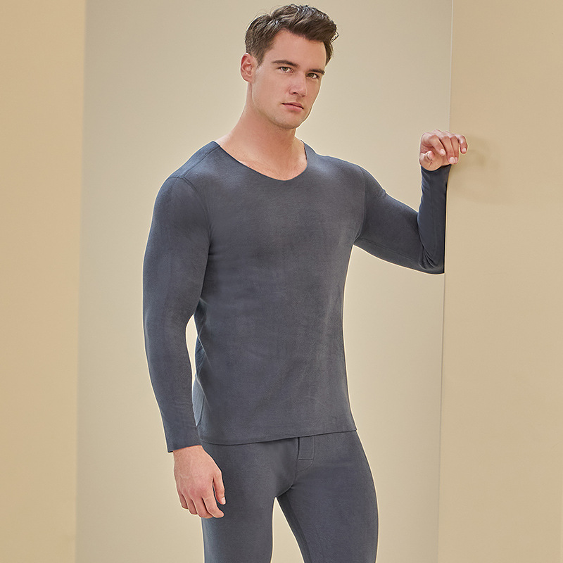シルクウール保温下着男性スーツ無痕vネック秋冬デコルテ厚い大きいサイズ男性秋衣秋ズボン