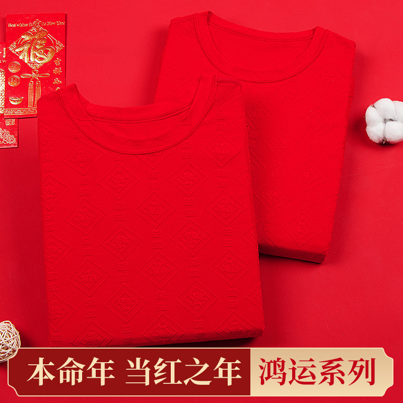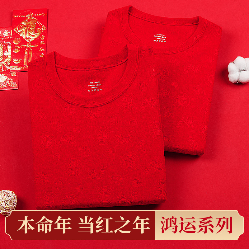 【錦鯉福】徳パイル保温下着男性スーツ赤本命年厚結婚女性秋衣秋ズボン