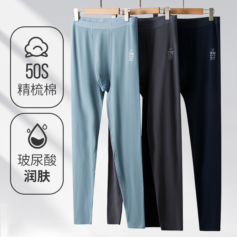 50s精練綿秋ズボン男性単品薄い秋冬5A抗菌ヒアルロン酸レカコットンパッチパンツ男性パンツ