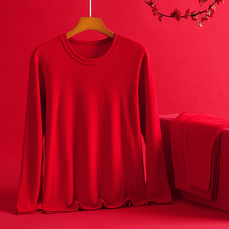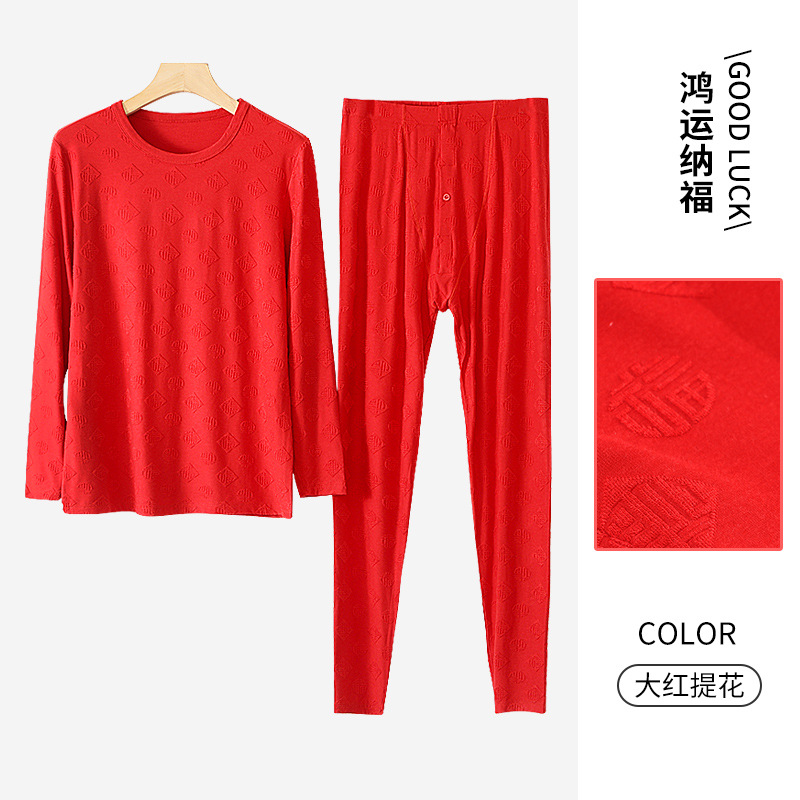 本命年秋衣秋ズボン男性スーツ純綿福字大赤色結婚花嫁カップルモデル女性保温下着