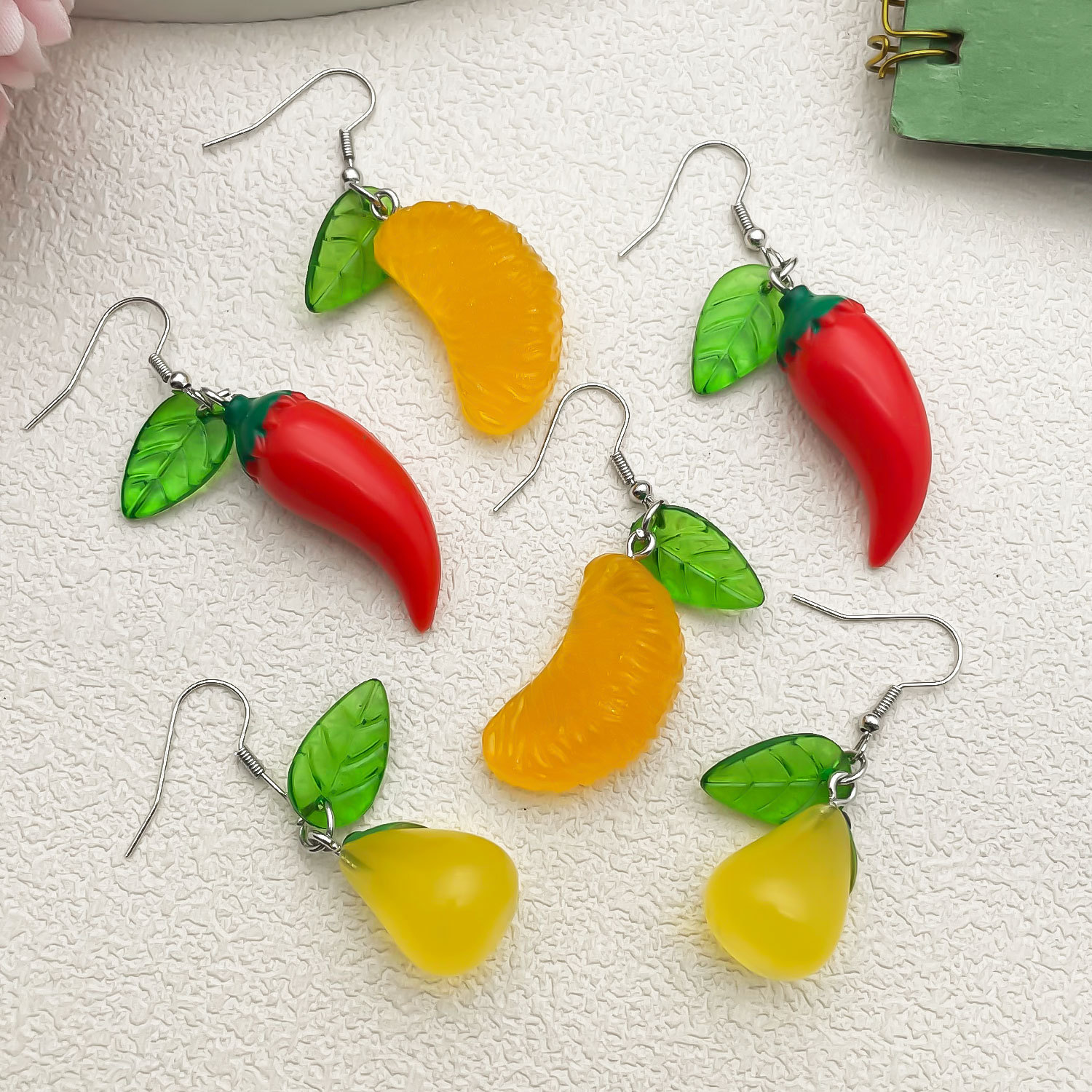 国境を越えたシミュレーション果物みかん柚子唐辛子耳フック欧米誇張個性イヤリング女性アクセサリーメーカー直販ブーム