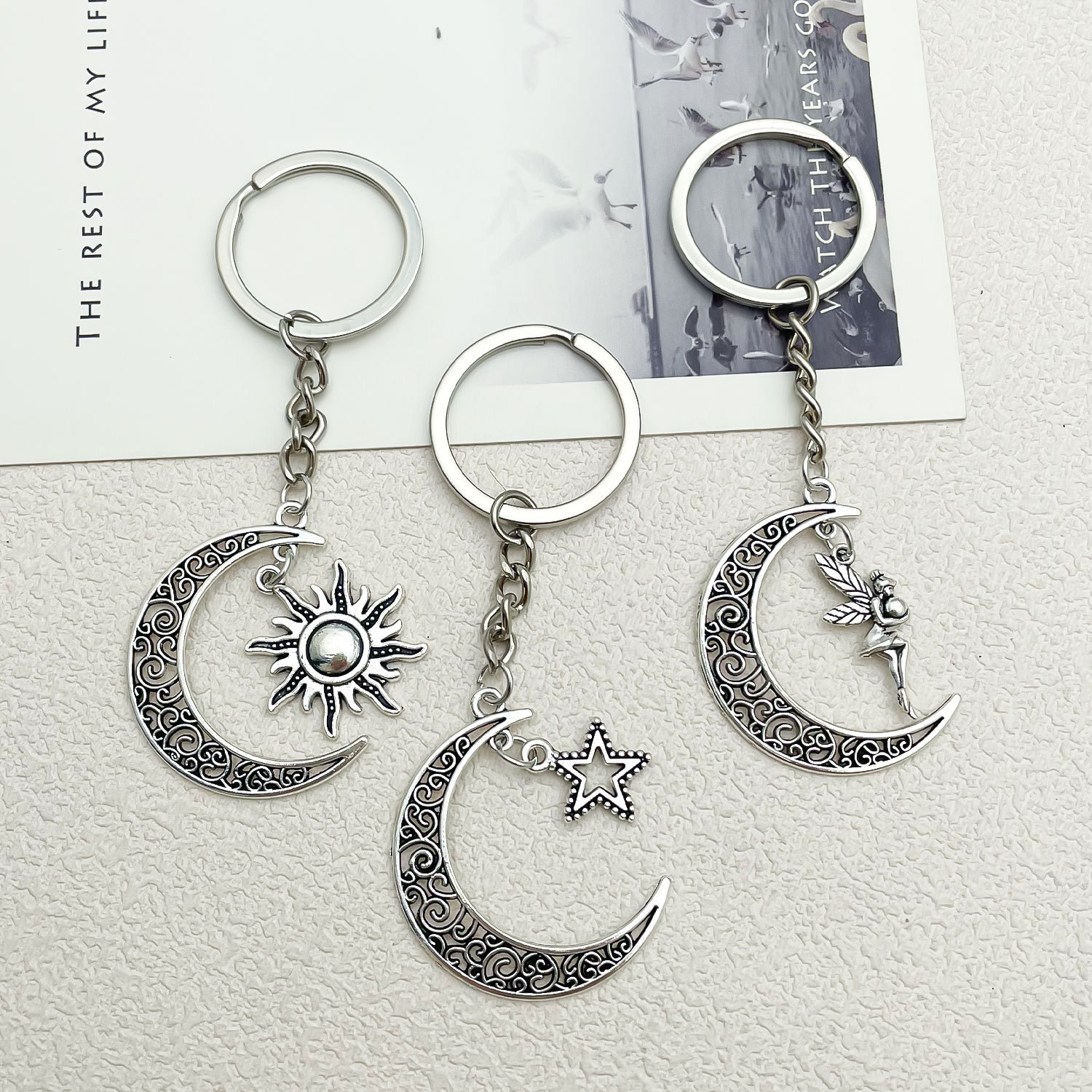国境を越えた人気の四芒星クロススタームーンキーホルダーファッショナブルでシンプルなバッグ装飾ペンダントAmazon