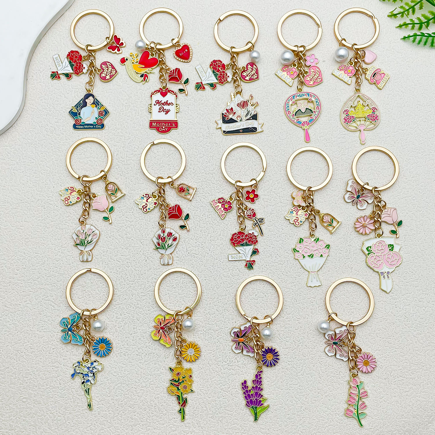 クロスボーダー母の日シリーズキーホルダーバッグストラップmom封筒バラの花束のキーチェーンはお母さんにプレゼントします。