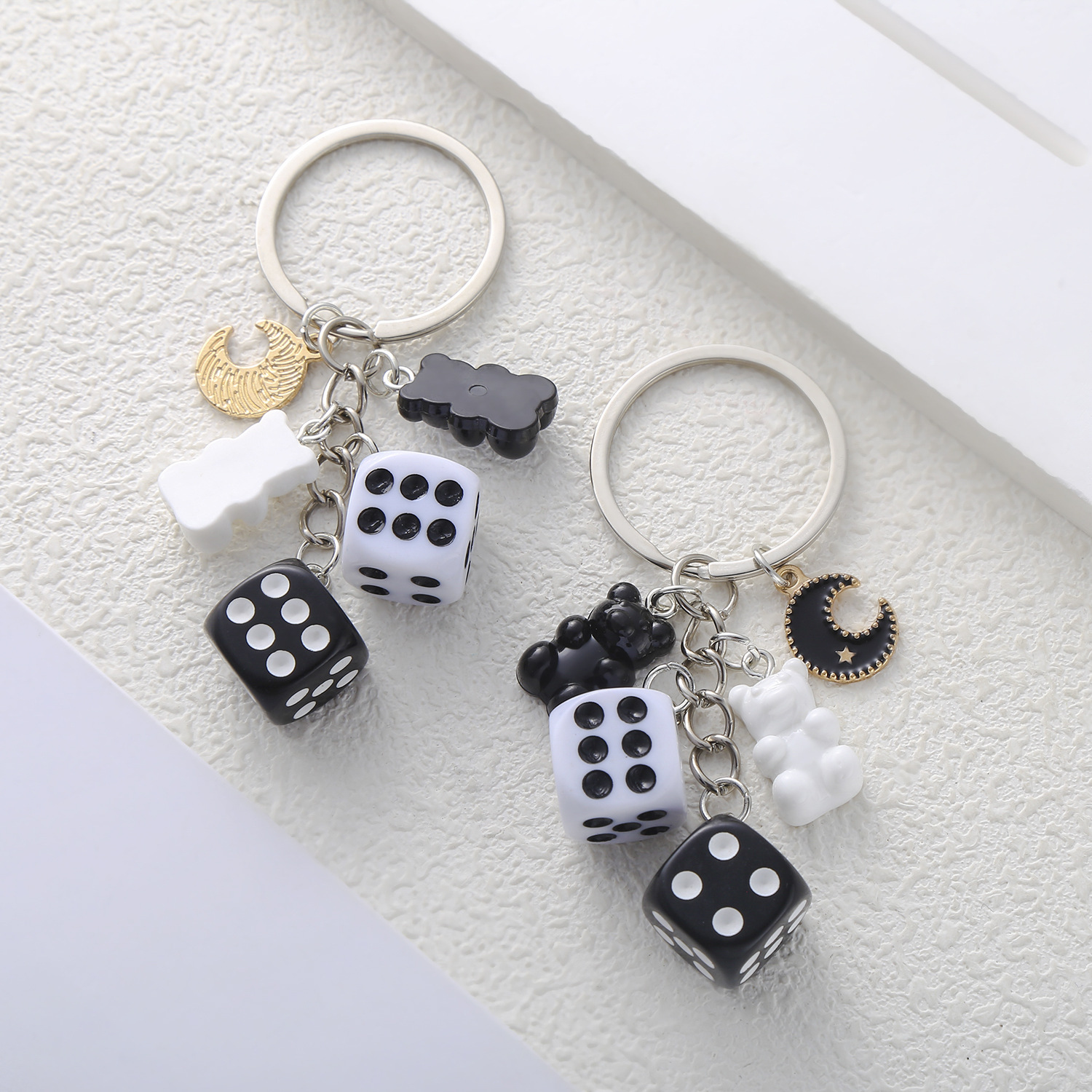黒系樹脂部品サイコロ熊月のキーホルダーが可愛いです。