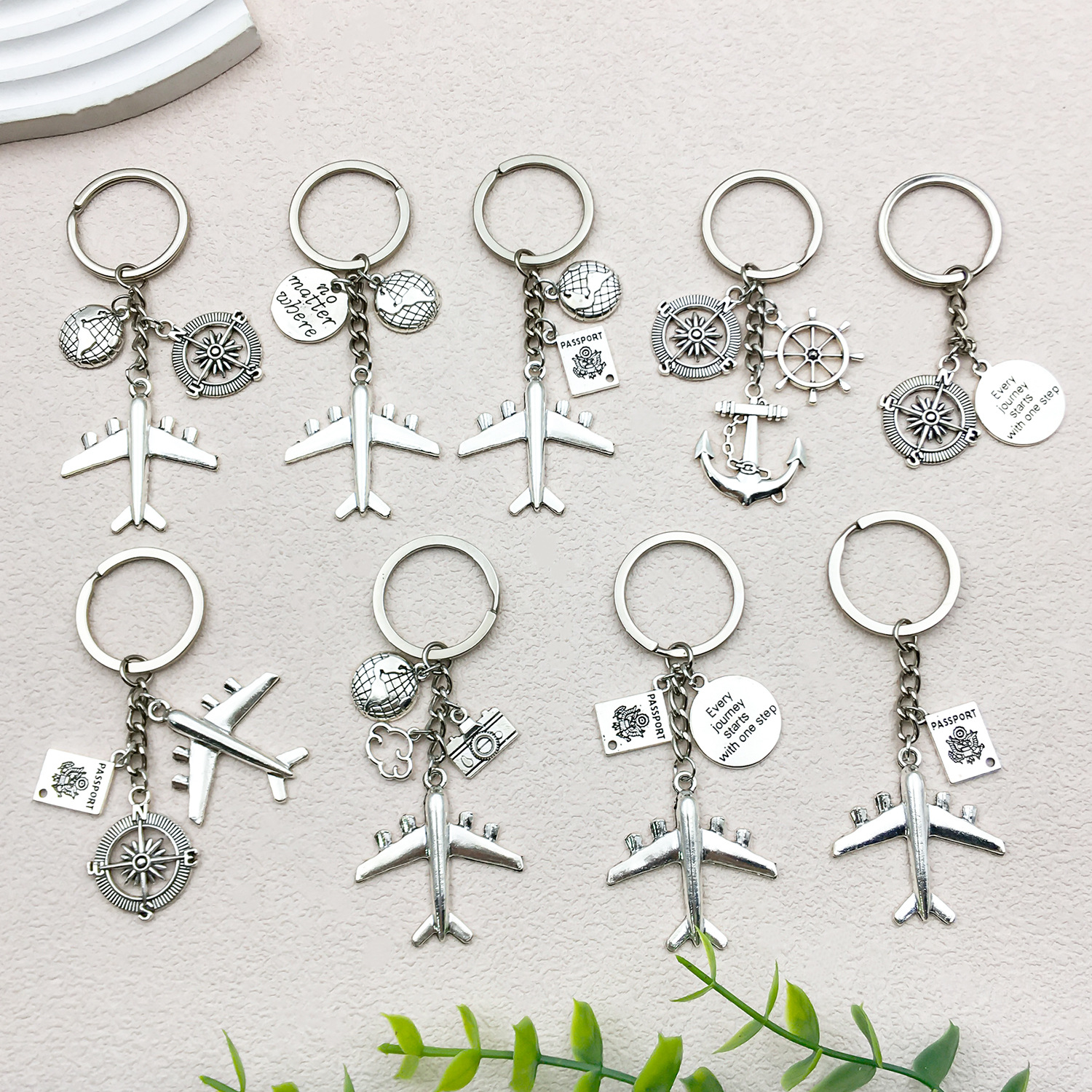 国境を越えて人気のno matter where大飛行機コンパス旅行キーホルダーペンダント金属キーホルダー