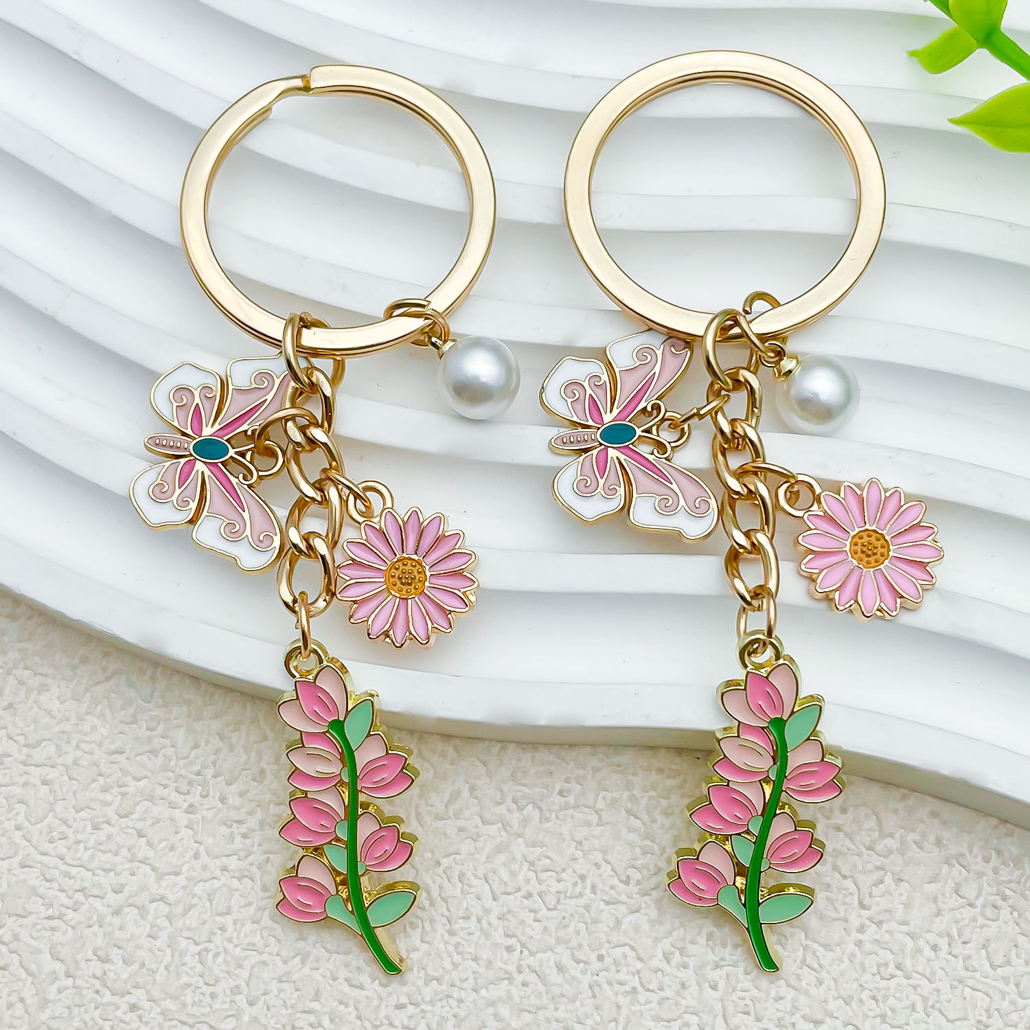 クロスボーダー甘くてかわいいユリの花キーホルダーリング蝶デイジーハイエンドバッグペンダント母の日ギフト