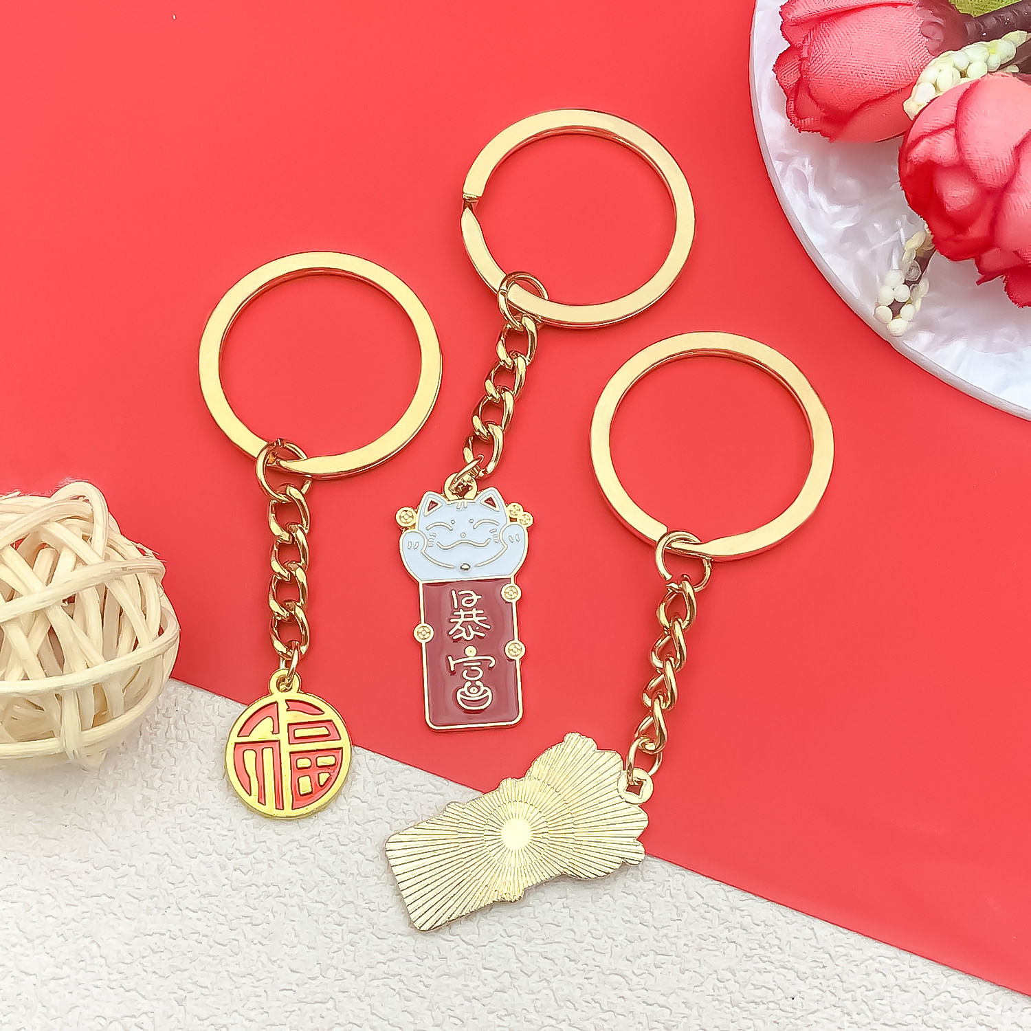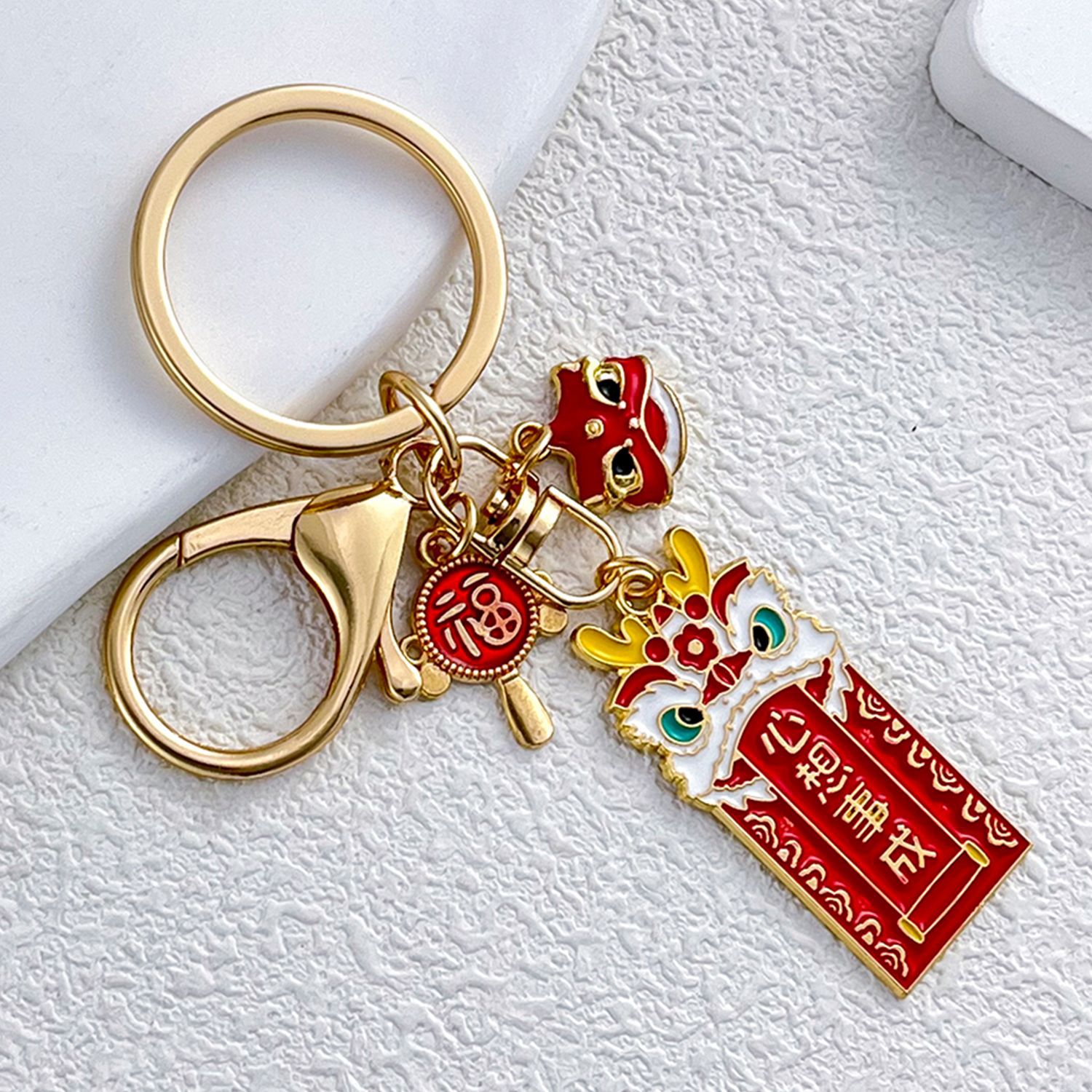 新年の平安喜びの祝福の札の竜年の目を覚ましますライオンの鍵は春節の贈り物を掛けておめでとうございます。