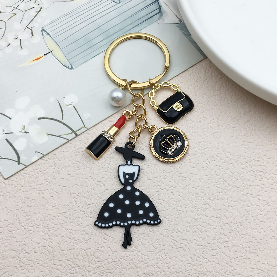 新しい油を垂らした黒い女性のバッグの口紅の王冠のキーホルダーのファッションのアイデアの小さいペンダントのクロスボーダーはもっぱらよく売れています。