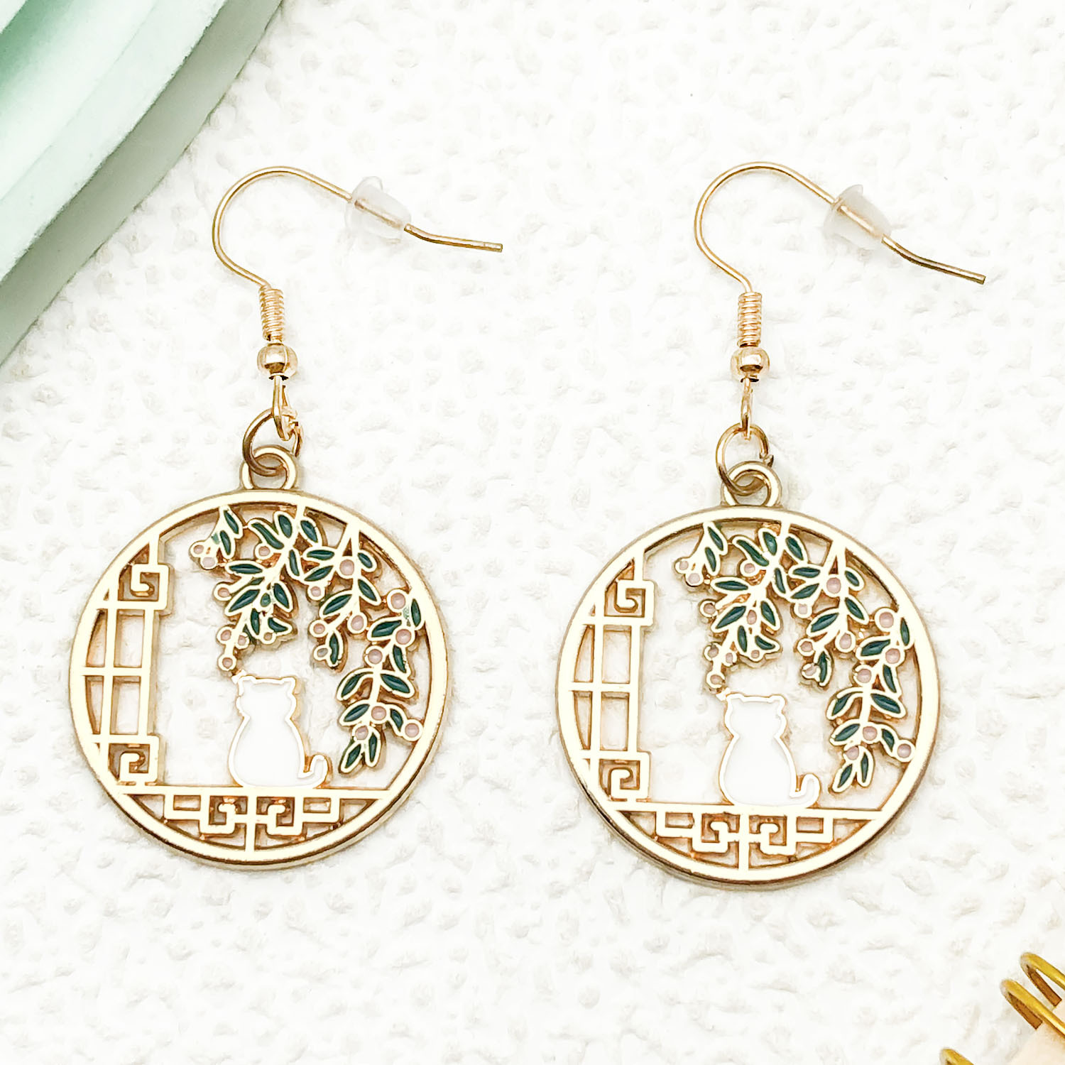 新しい猫の女性のイヤリングのペアの個性的な創意中国風のイヤリングの合金の油のイヤリングのクロスボーダーの熱い販売の潮