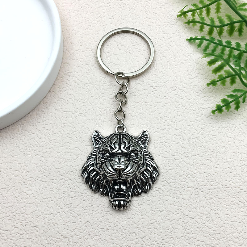 欧米の新型のシミュレーションのトラの頭のペンダントの古銀の合金の動物のキーホルダーの小さい掛けは国境を越えてよく売れています。