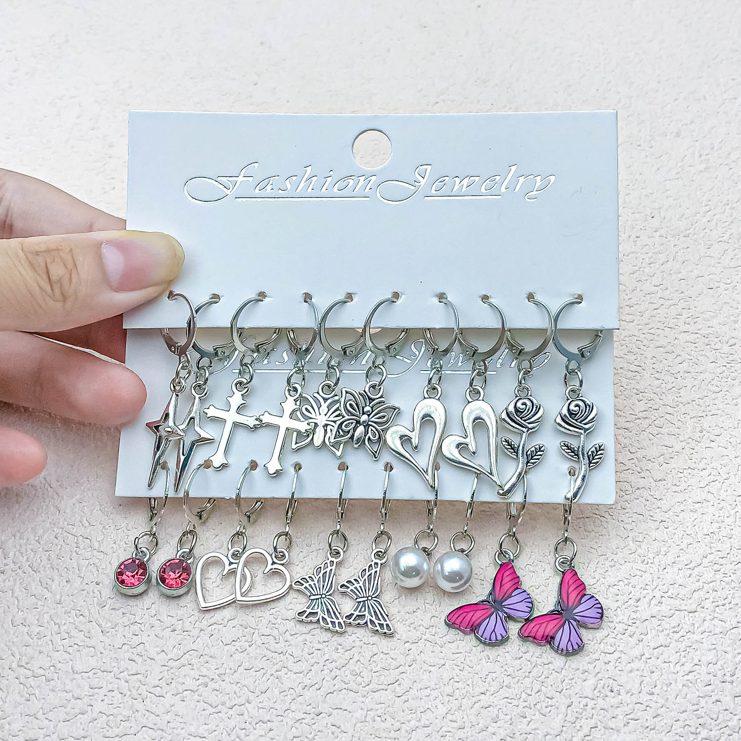10対白kクロス四芒星耳ボタンイヤリングセットシンプルで高級感のある真珠耳飾り女性がクロスボーダーで人気があります。
