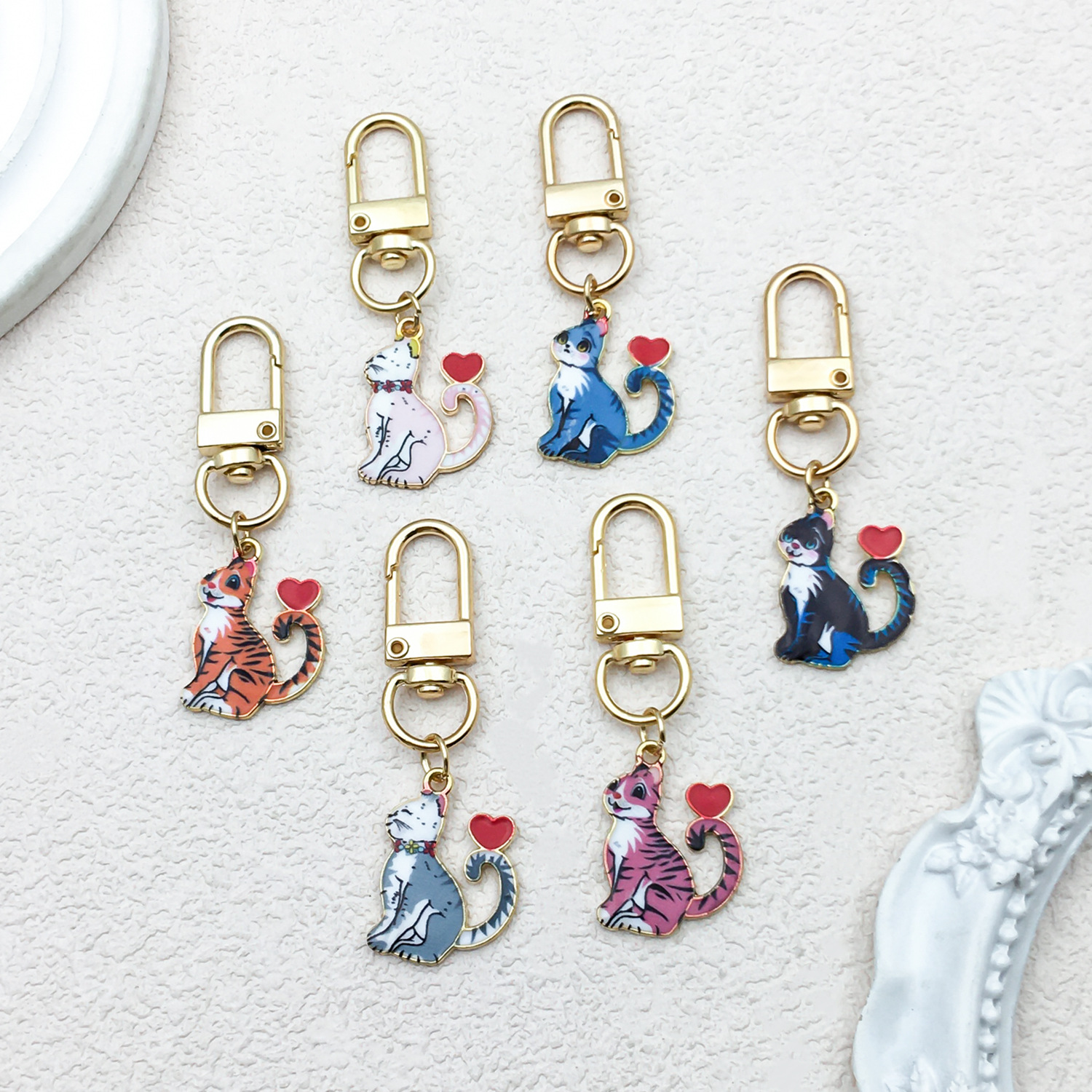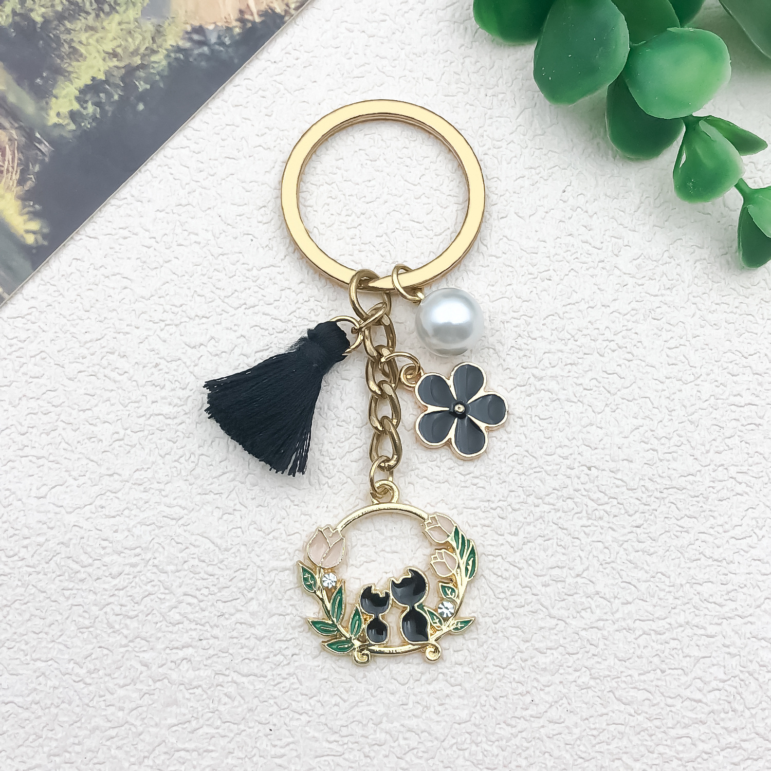 カップルの滴油合金の黒いかわいい猫の真珠のフリンジペンダントのキーホルダーのアクセサリーの卸売り