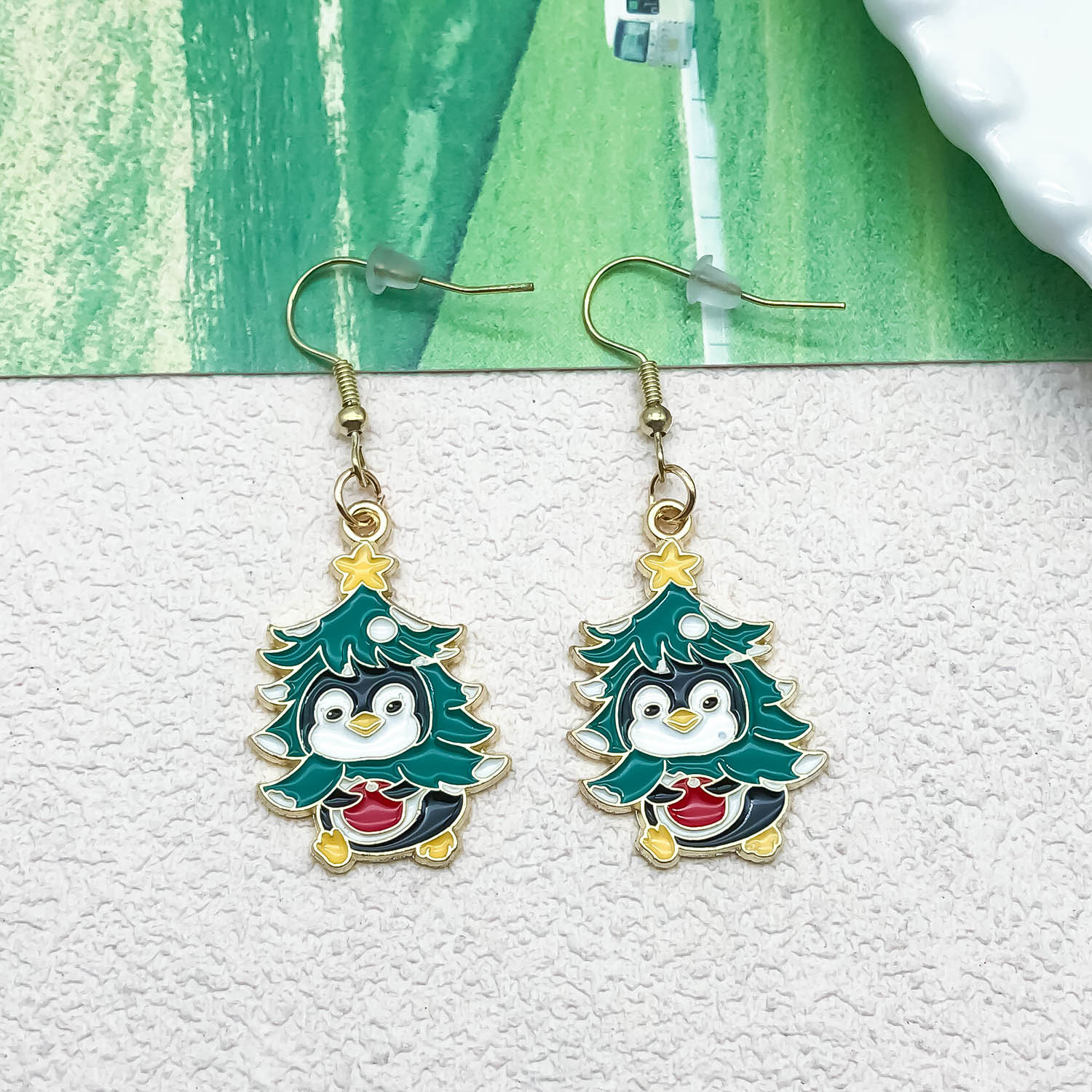 面白いアイデアクリスマスツリーペンギン大衆個性耳フックイヤリング漫画かわいい耳飾り女性アマゾン国境を越えた
