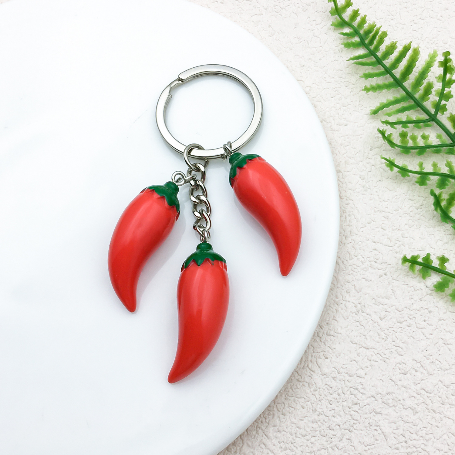 クロスボーダー赤色樹脂唐辛子自動車キーホルダー高級感ハンドバッグ装飾品ストラップイベントプレゼント卸売り