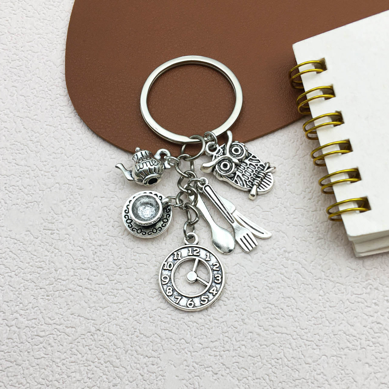 古銀料理料理道具ナイフとスプーンのティーポットのキーホルダー