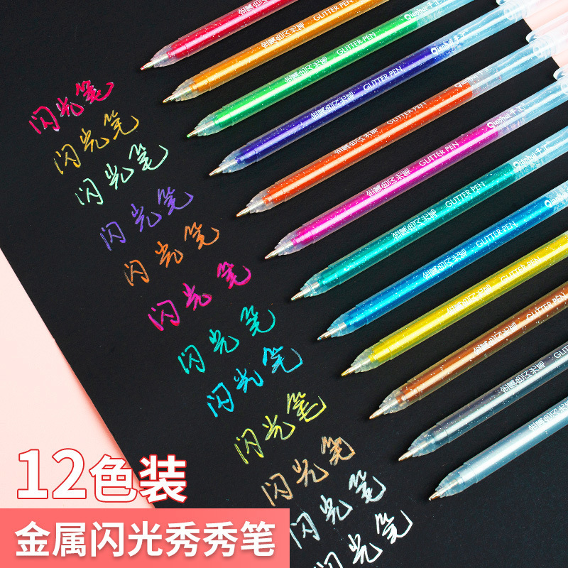 千匯フラッシュペン学生珠光カラーフラッシュインクマーク蛍光ペンハイライト子供12色塗装ペン