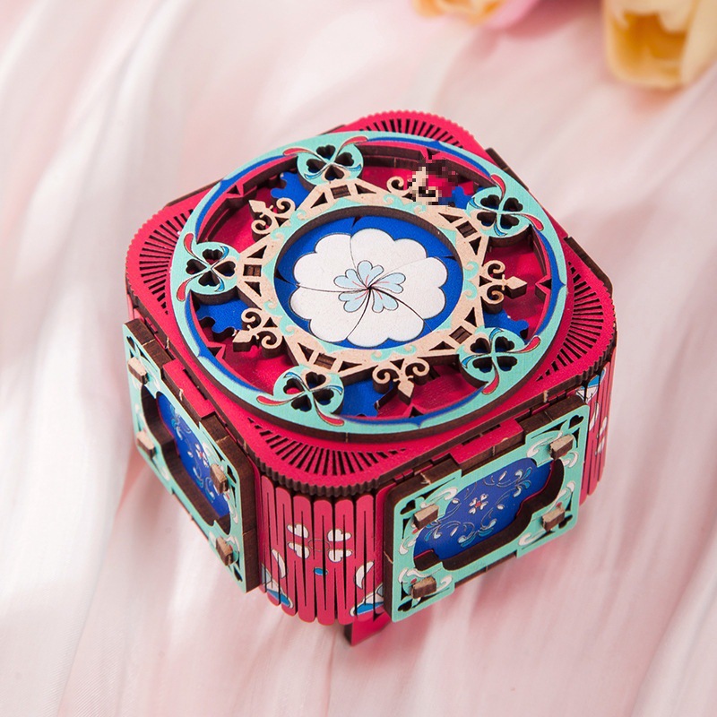 Diyオルゴール手回しオルゴールクローバー木製パズル3D立体機械祭りクリエイティブギフト卸売