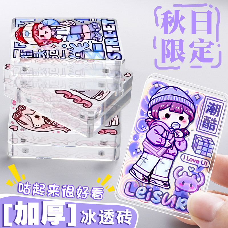 アクリルタイルdiy透明磁気吸盤かわいい麻雀カード写真フォトフレームカードステッカー