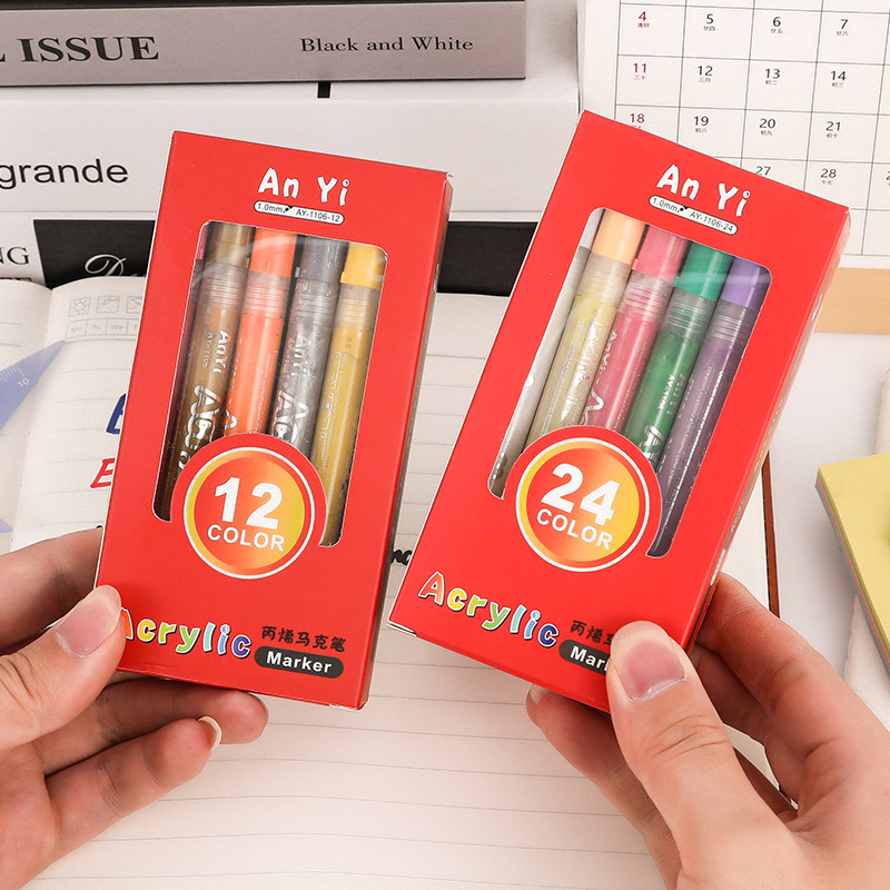 直液式アクリルマークペンソフトヘッドカラー絵画落書きペンマークペン不透色畳色美術専用