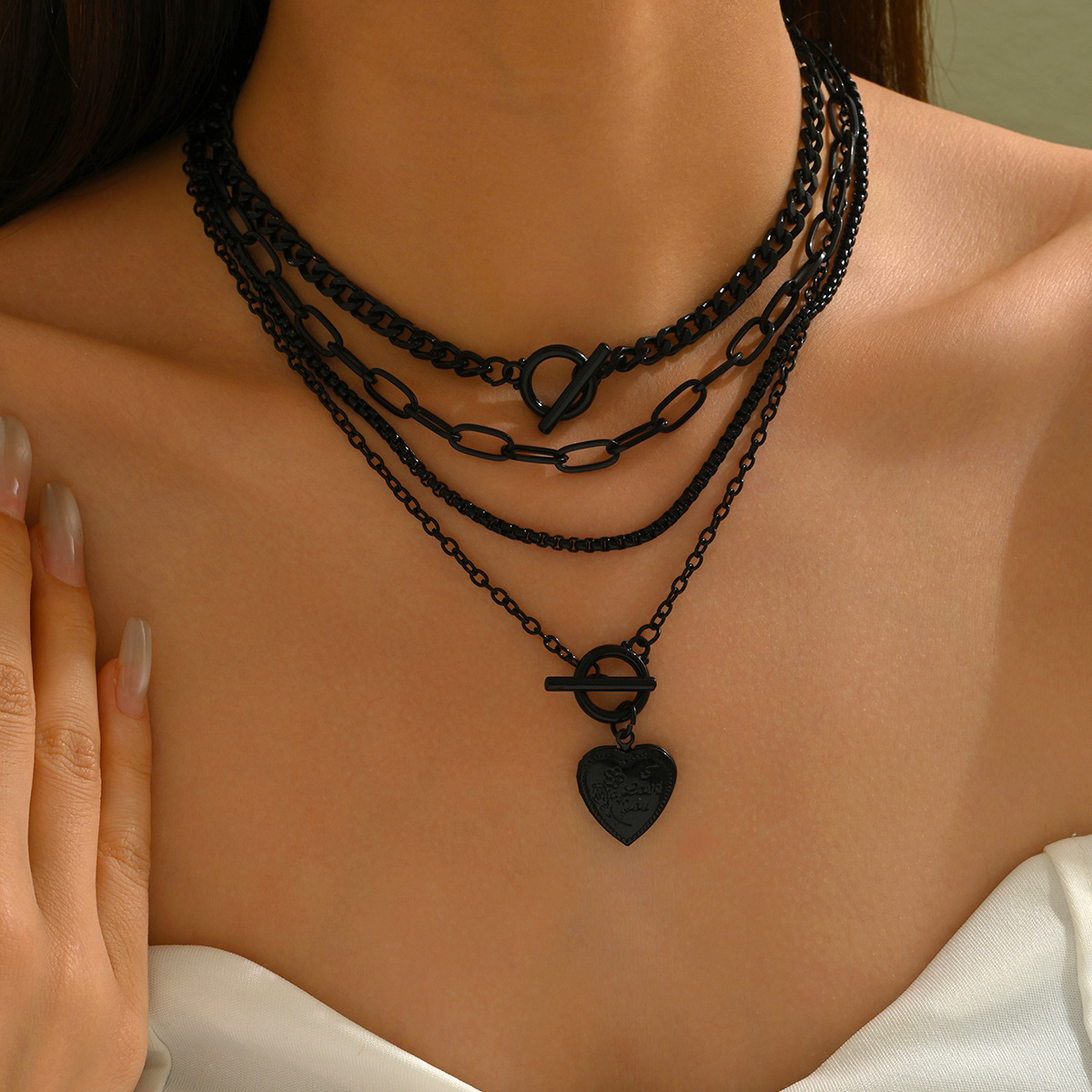 ヨーロッパとアメリカのクロスボーダージュエリーファッショナブルな甘くてクールなスタイルブラックピーチハートOTバックルネックレス女性ヒップホップホットガールコールドスタイルスーツ