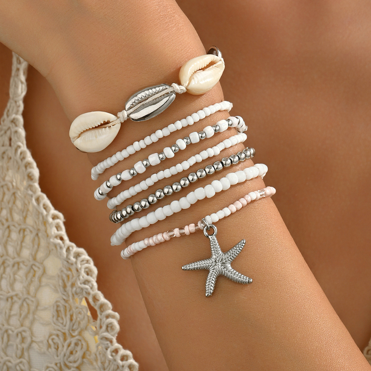 ヨーロッパとアメリカのクロスボーダージュエリーボヘミアンリゾートスタイルライスビーズCCBブレスレット合金ヒトデペンダントハンドジュエリー