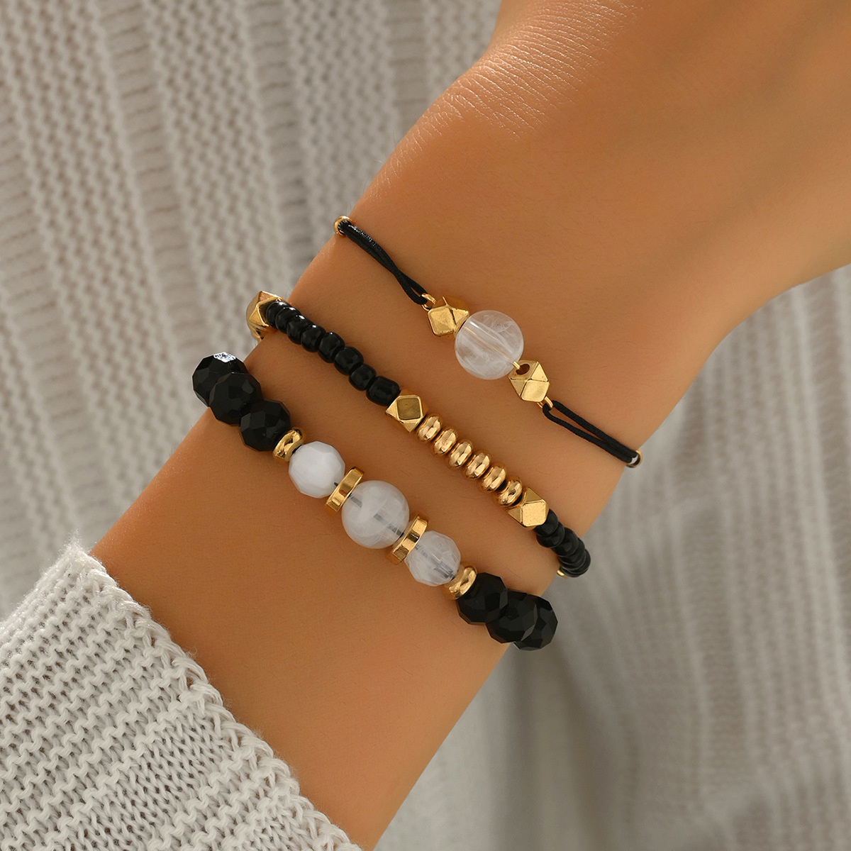 ヨーロッパとアメリカの国境を越えた新しいスタイルのブラッククリスタルビーズ手織り調節可能なブレスレット多層スタックファッショナブルで多用途な女性用