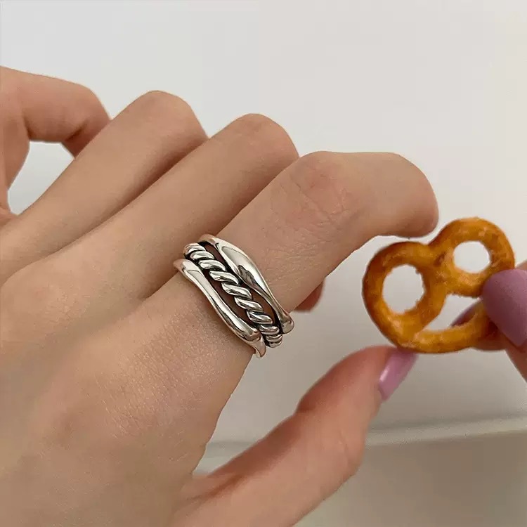 ヨーロッパとアメリカのニッチデザインインスタイル編み込みツイスト三層リング女性のファッショナブルな個性幾何学的な巻きリング開口部