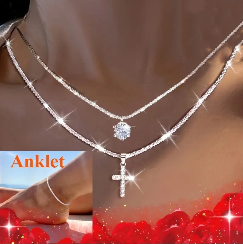 TEMUクロスボーダーの人気商品の波がきらきらと輝くネックレスの足のチェーンの3つのセットはジルコンのファッションのネックレスのセットの女性に輝いています。