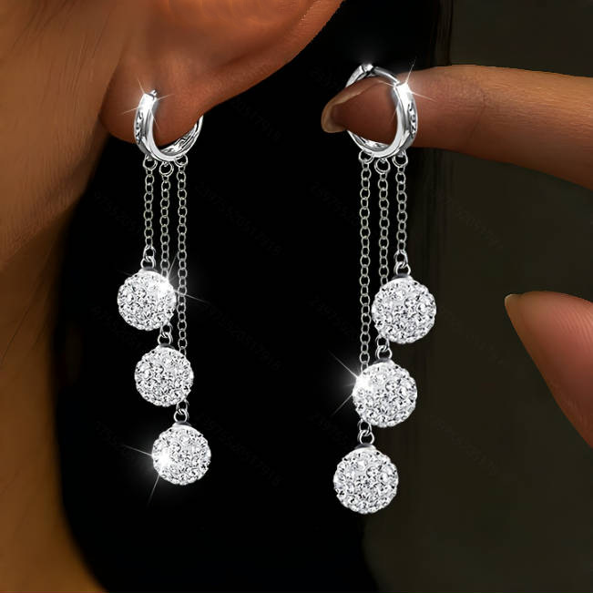 欧米のクロスボーダーのファッションの気質の耳のボタンのフラッシュドリルの丸いボールの長いタイプのフリンジイヤリングの冷たい風の耳飾りの女性